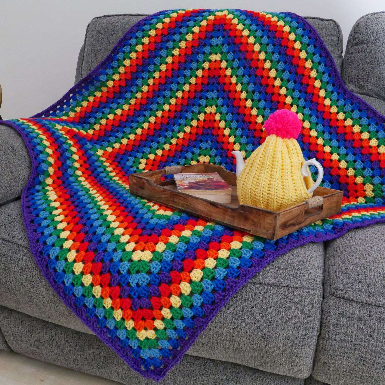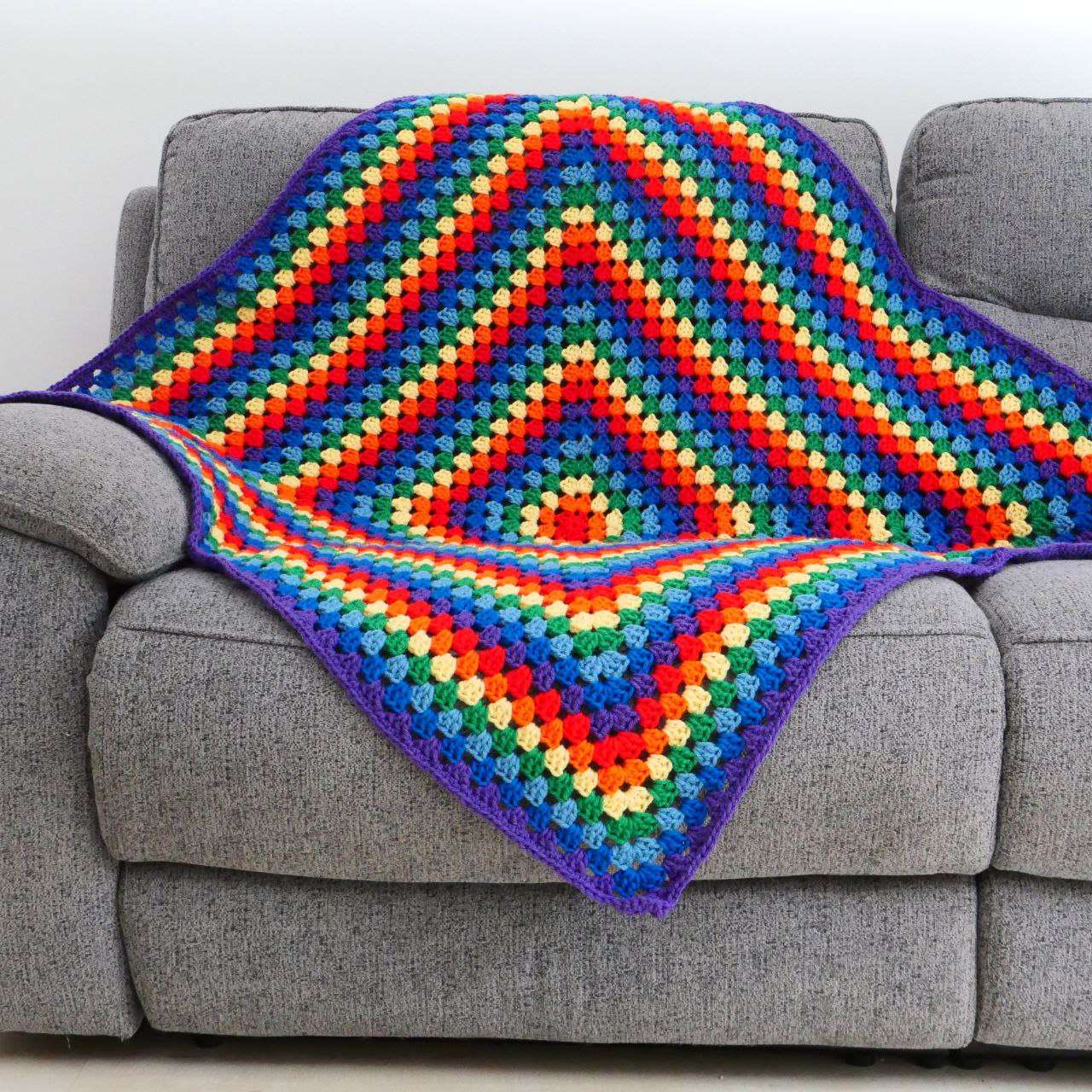 | Shop Irish crafts with my Bogha Báistí (rainbow) chakra blanket. Crocheted from chunky yarn, this blanket will keep out the coldest of winter chills. It celebrates the magic of rainbows in the Irish landscape as well as the rainbow of chakras inside.