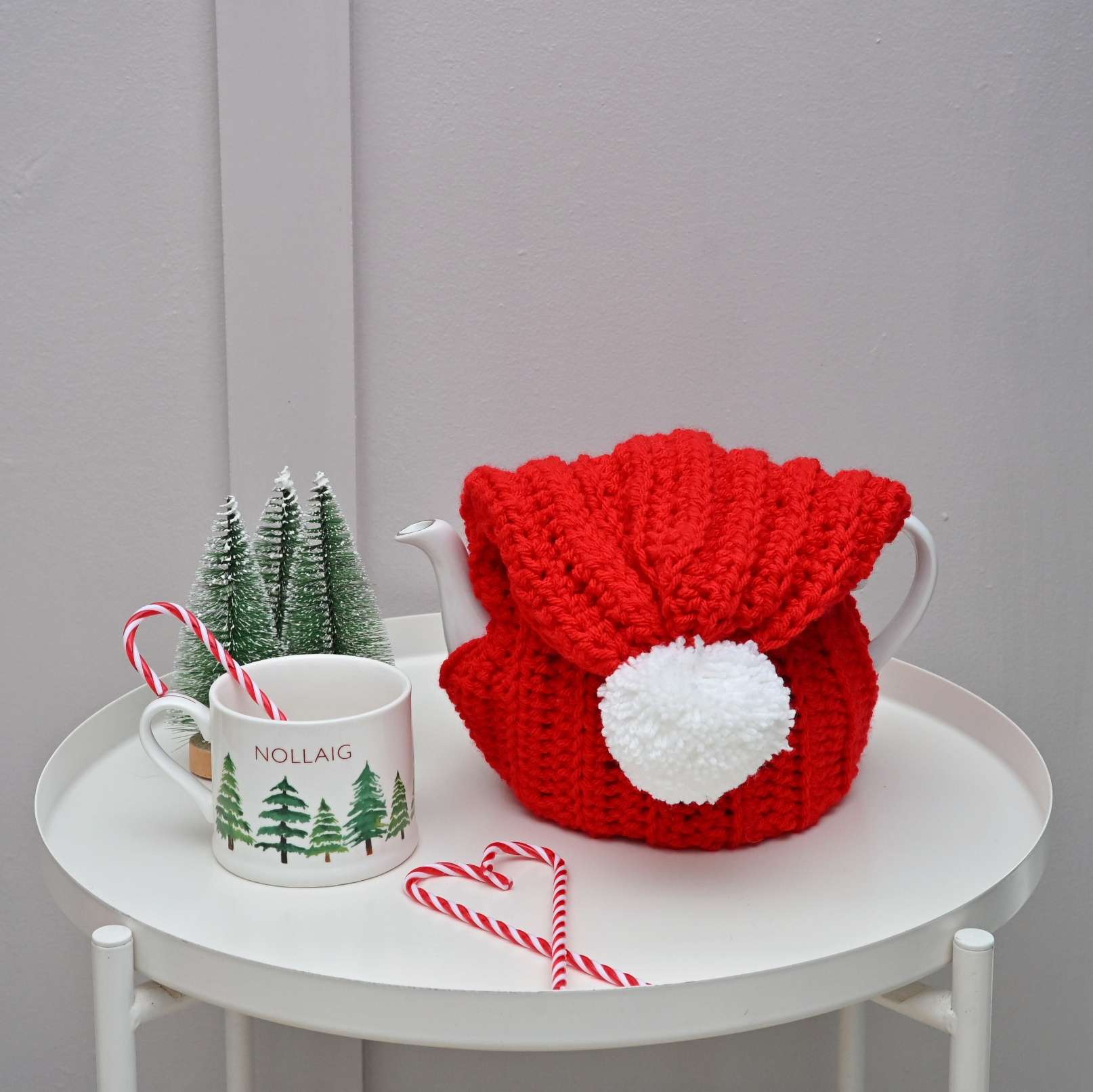 Shop Irish Christmas decor and add a touch of cute and whimsy to your teapot and kitchen with my Nollaig Santa hat tea cosy. The cosy can be used as an upright hat or folded over. Handcrafted using soft and durable yarn, it is the perfect seasonal accessory. It is sure to bring a smile to your face and add a touch of joy to your routine.